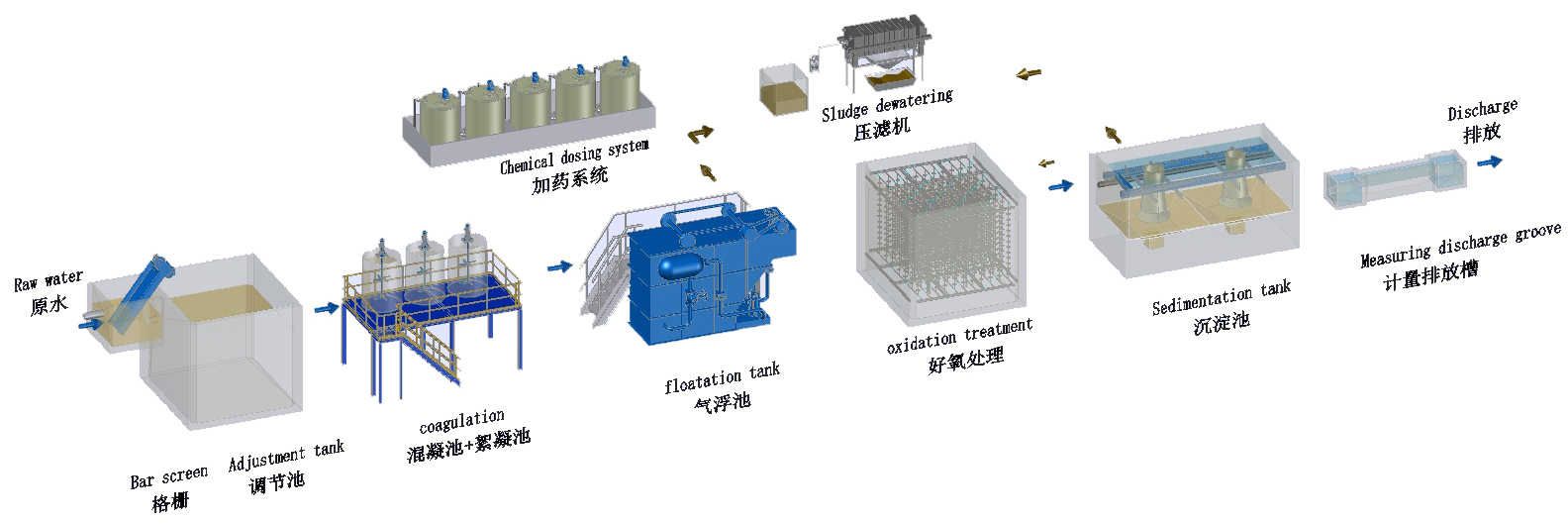 2.部分可溶性油脂也會(huì)引起生物系統(tǒng)中毒,采用混凝氣浮工藝進(jìn)行分離。